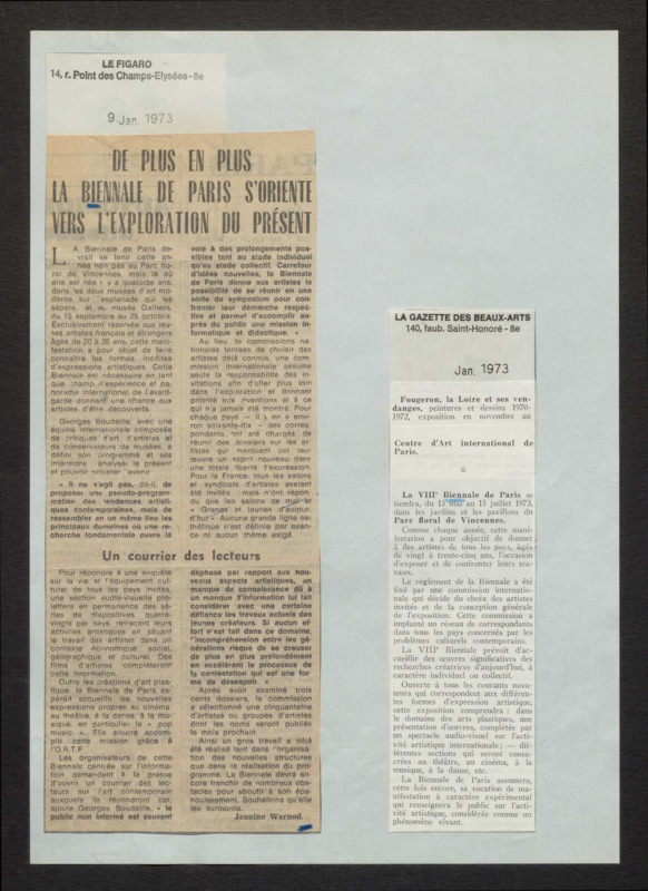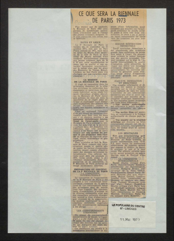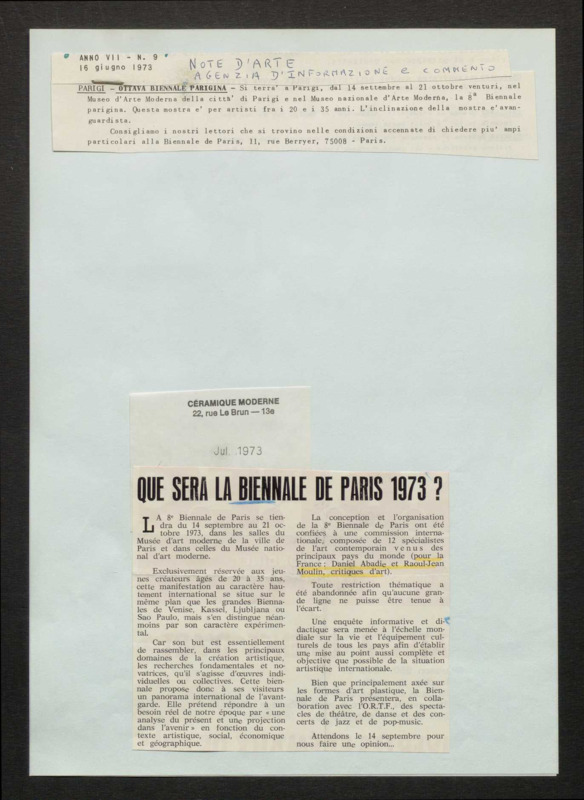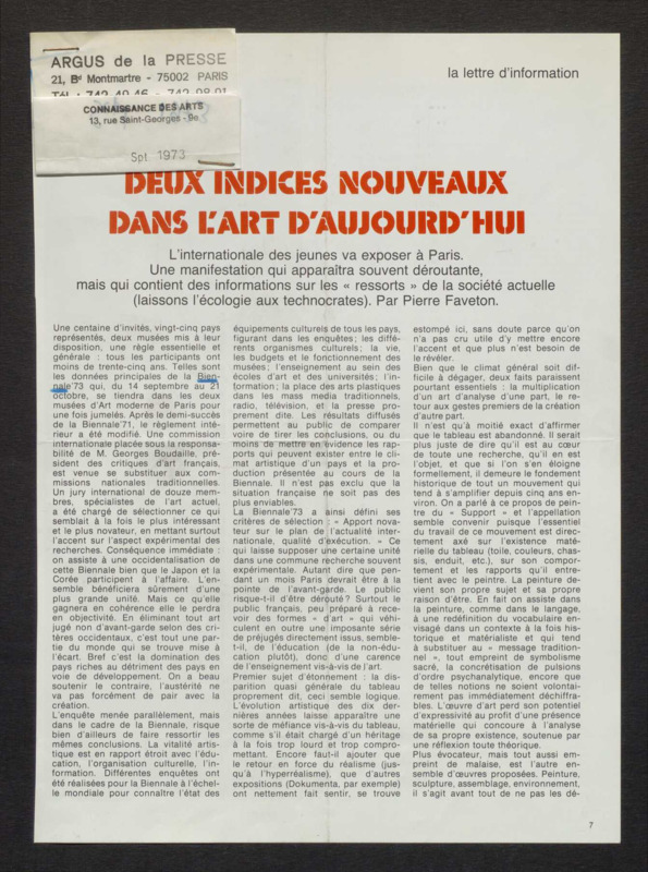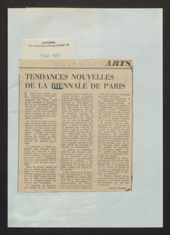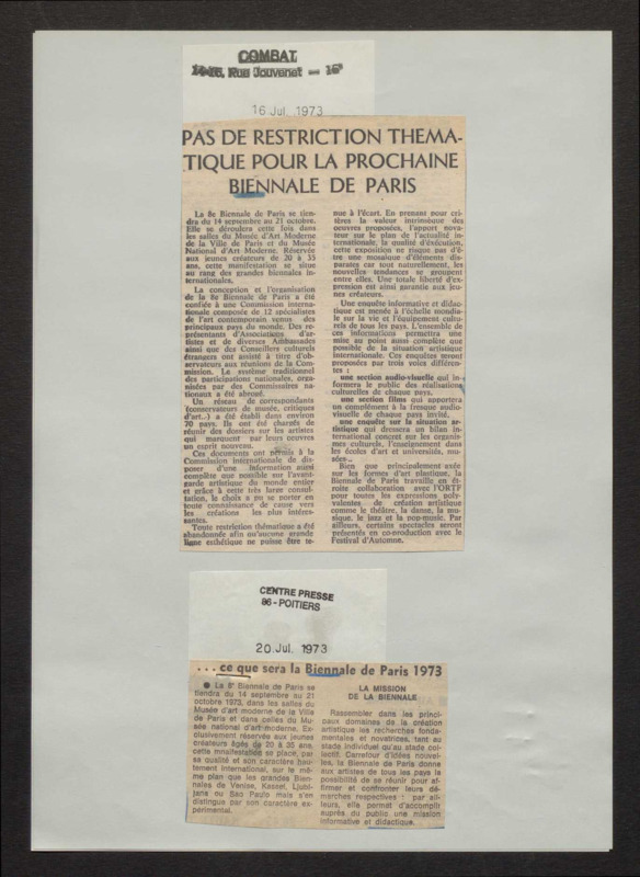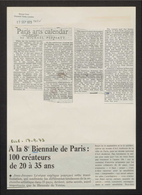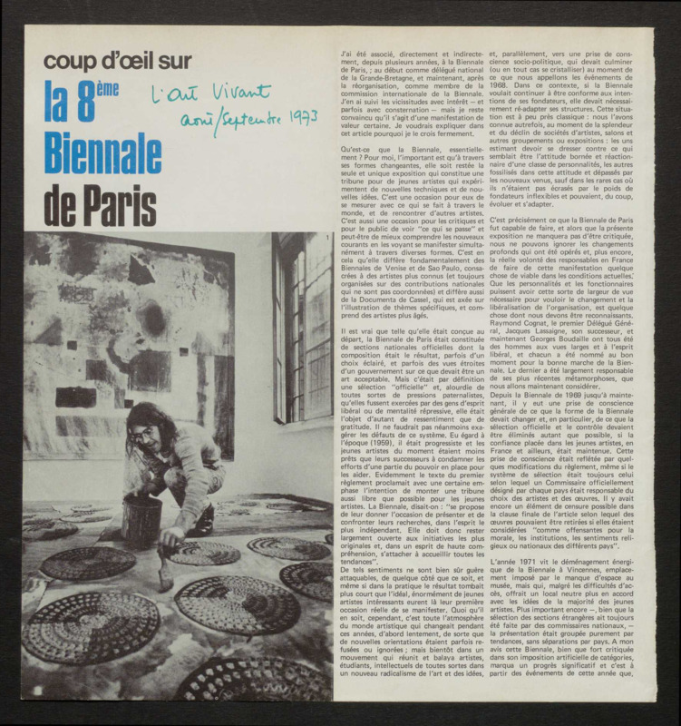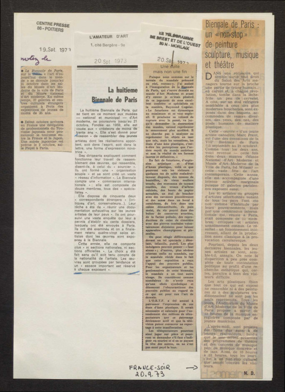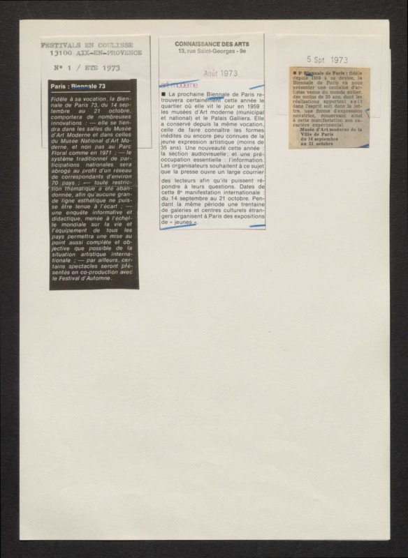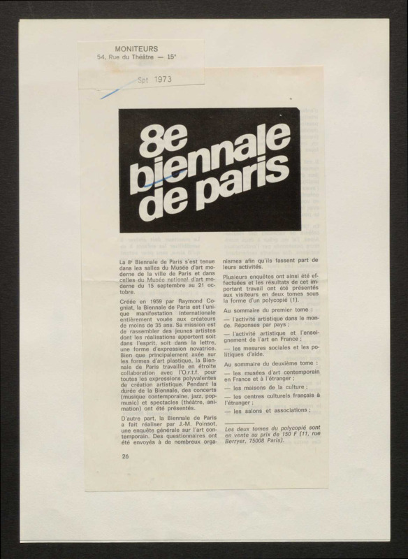 Revue de presse, Fonds Biennale de Paris 1959-1985, Archives de la critique d'art