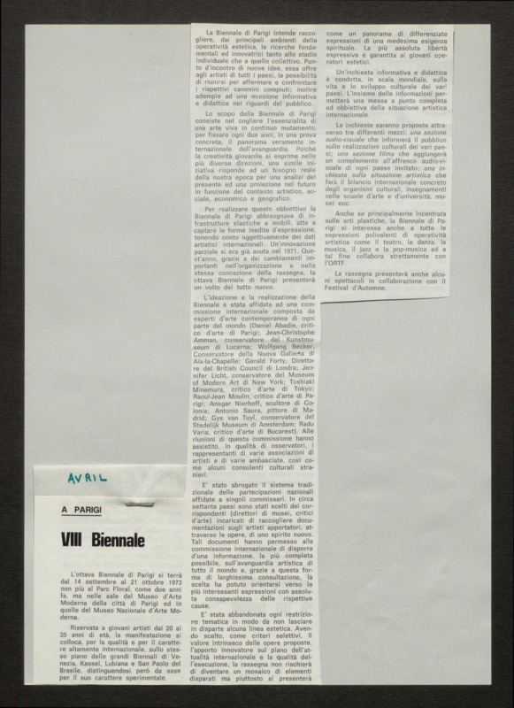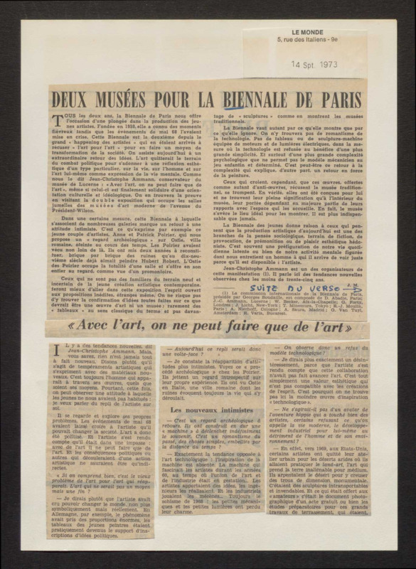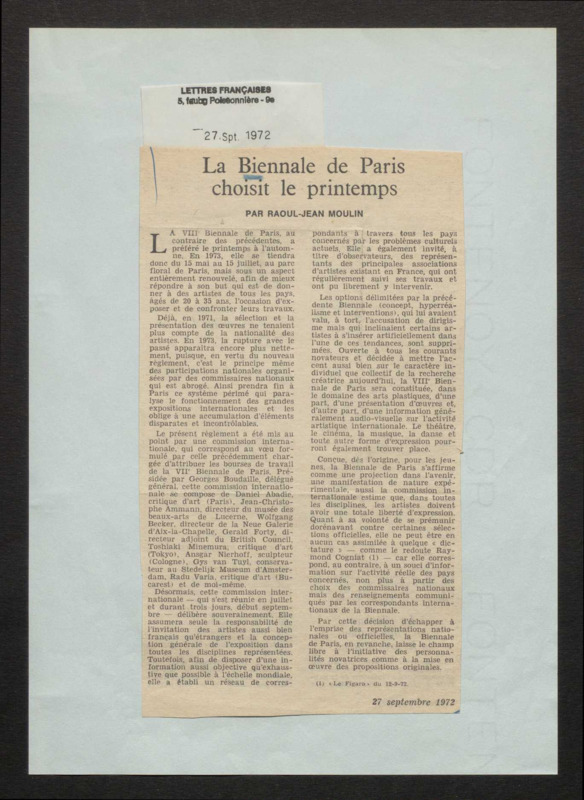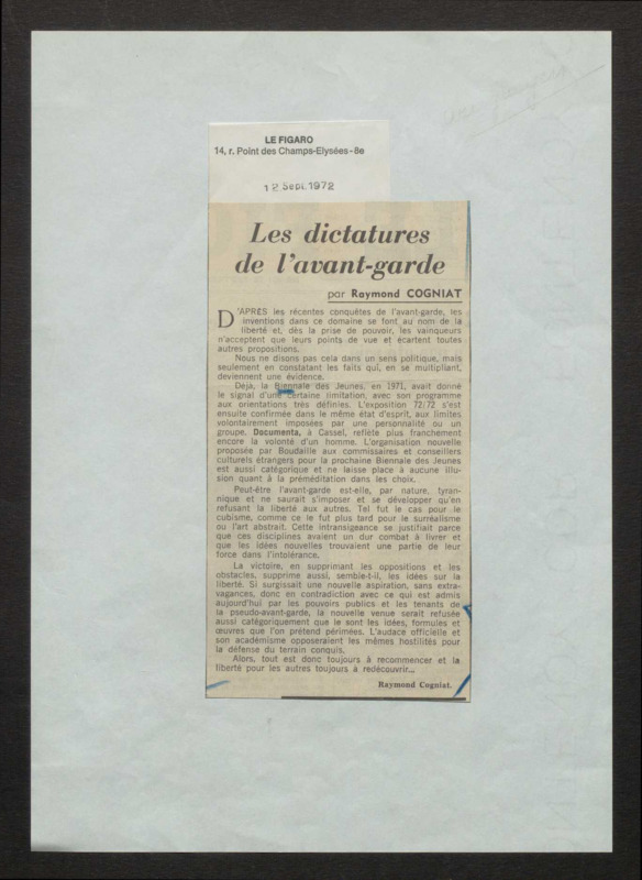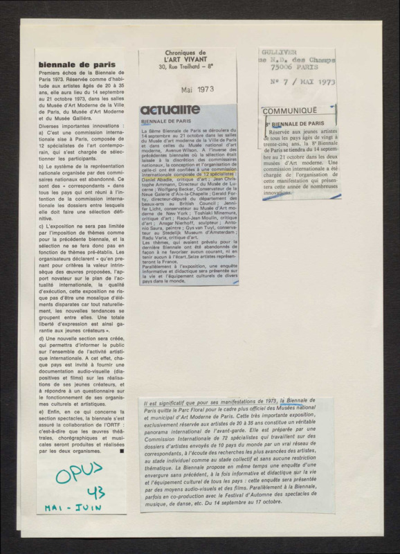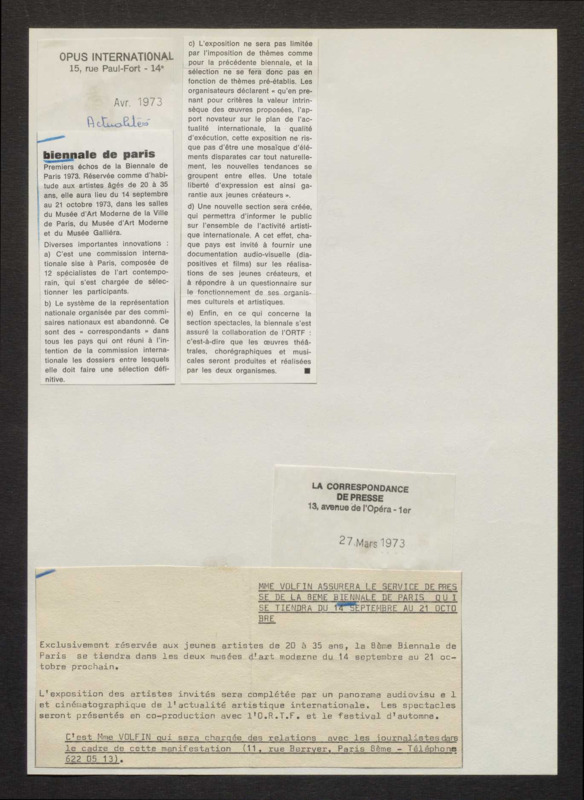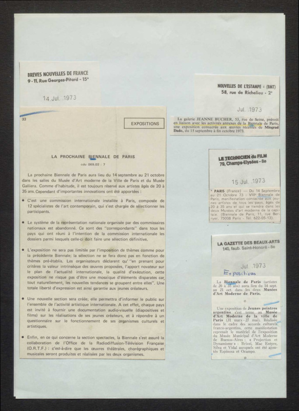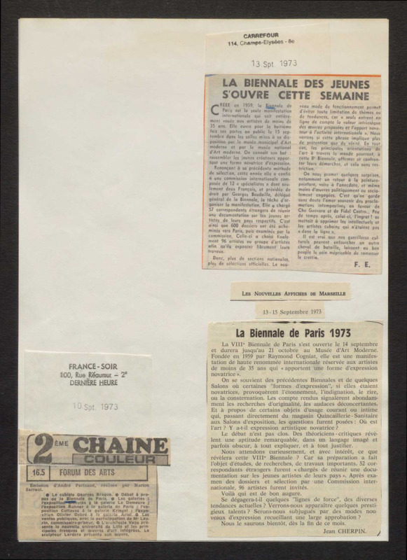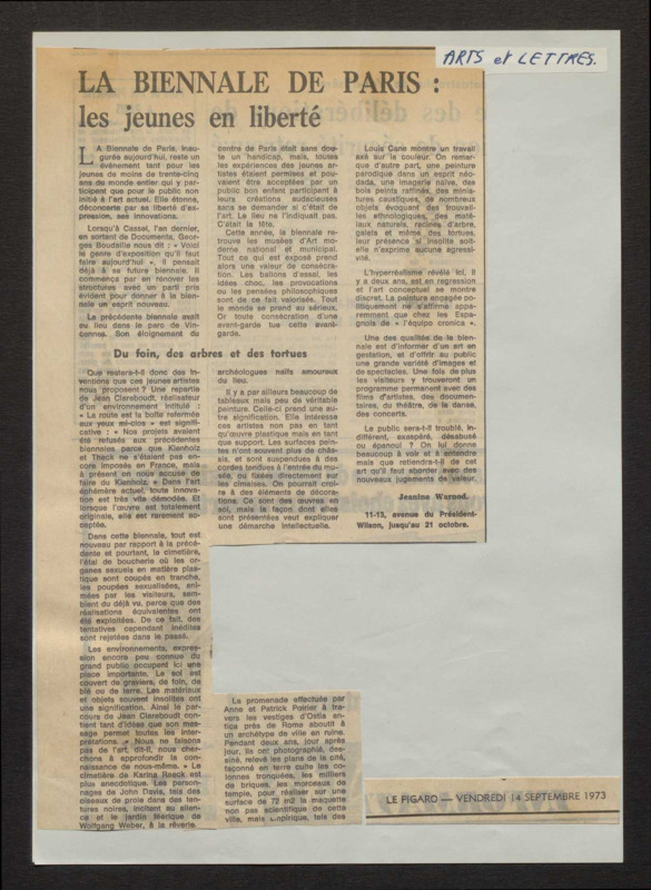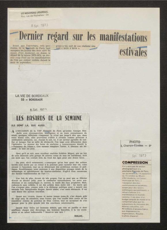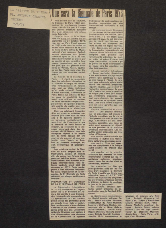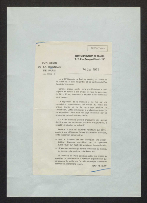 Revue de presse, Fonds Biennale de Paris 1959-1985, Archives de la critique d'art