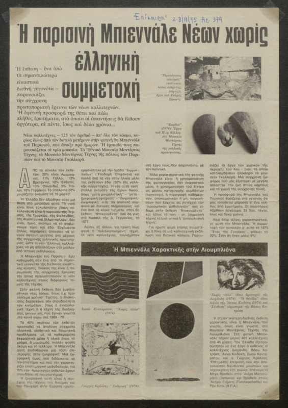 Revue de presse, Fonds Biennale de Paris 1959-1985, Archives de la critique d'art