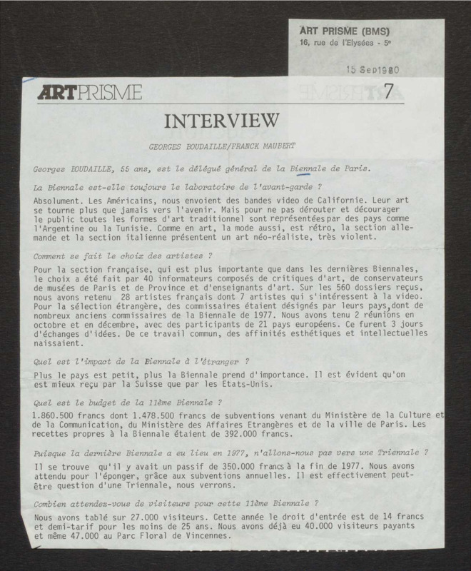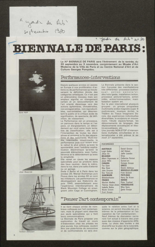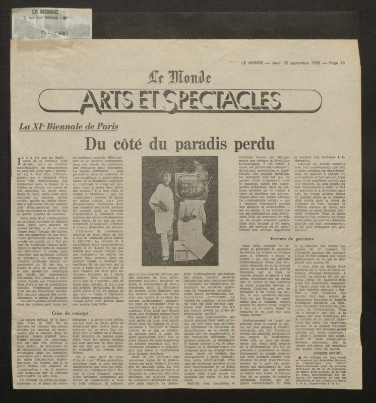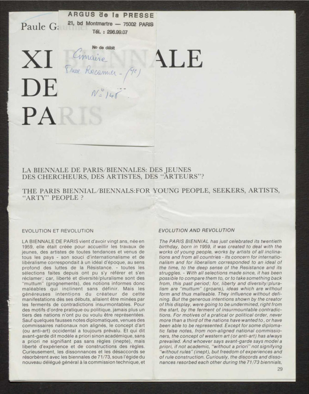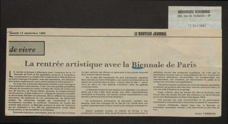 Revue de presse, Fonds Biennale de Paris 1959-1985, Archives de la critique d'art