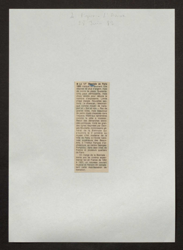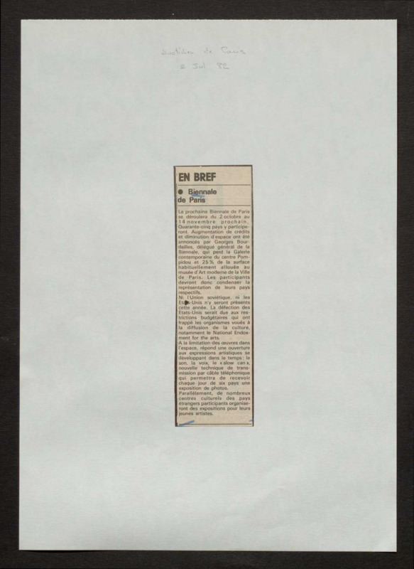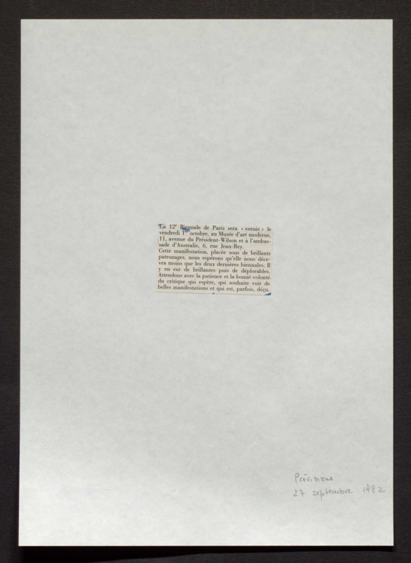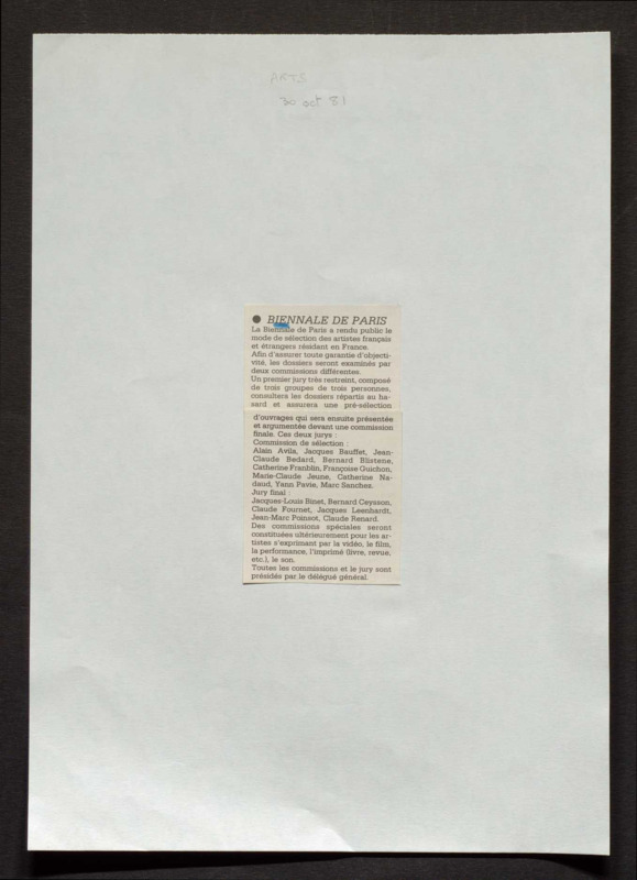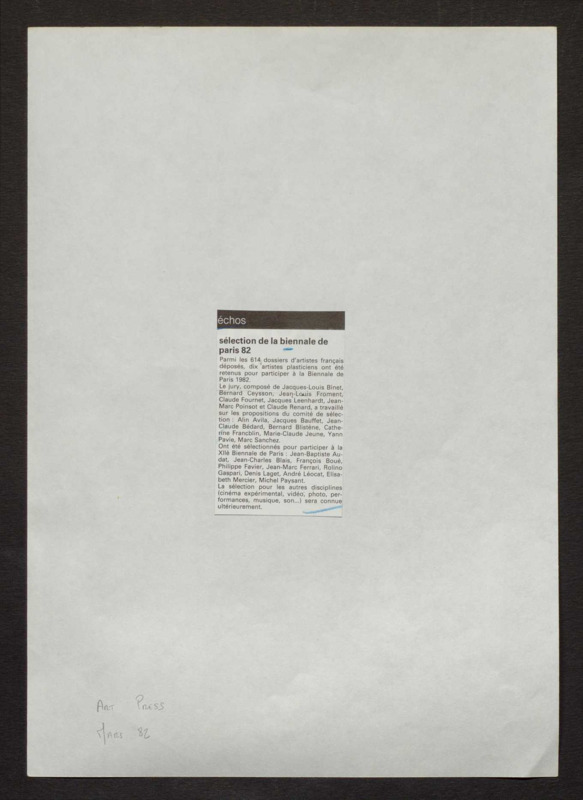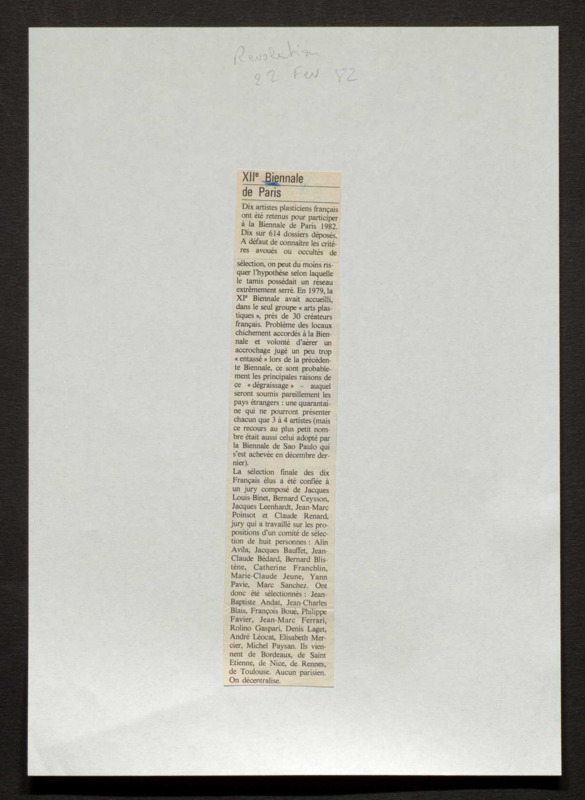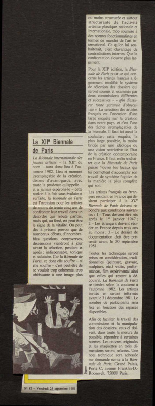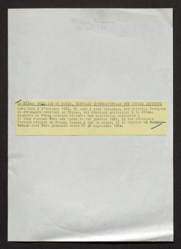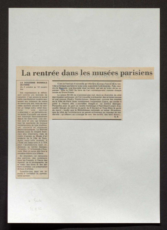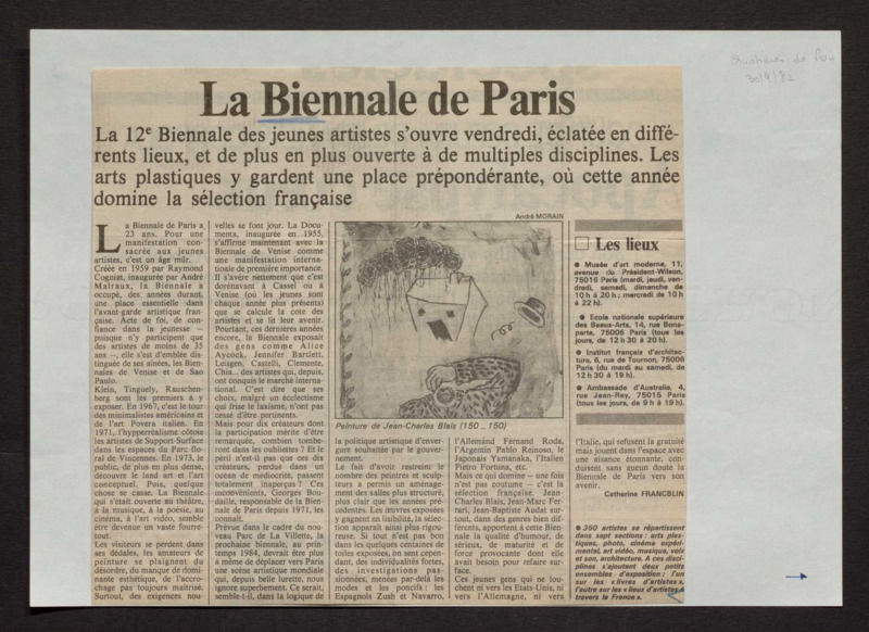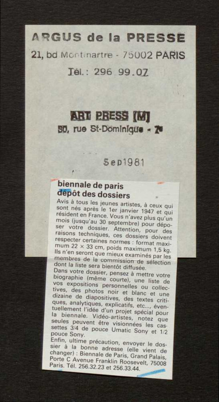 Revue de presse, Fonds Biennale de Paris 1959-1985, Archives de la critique d'art
