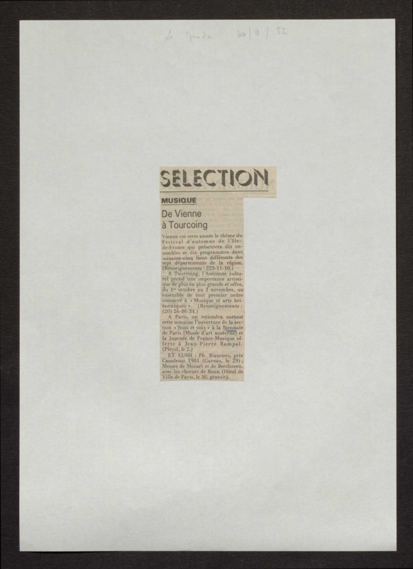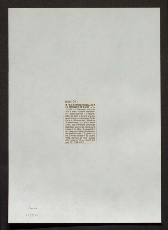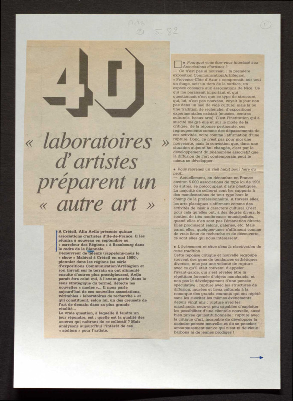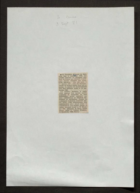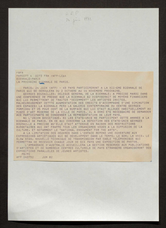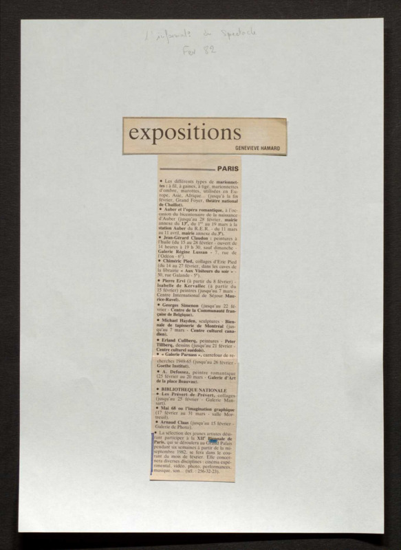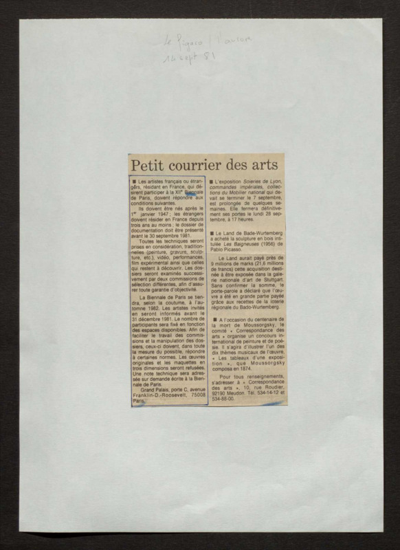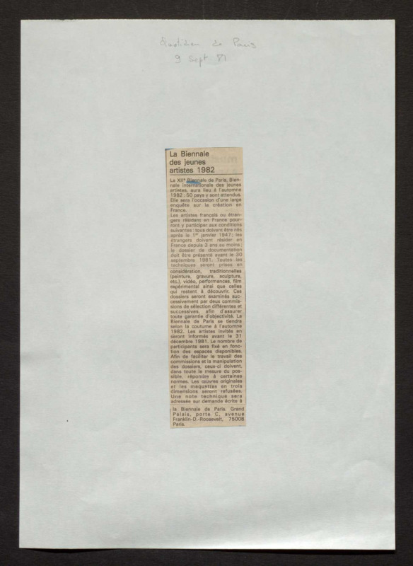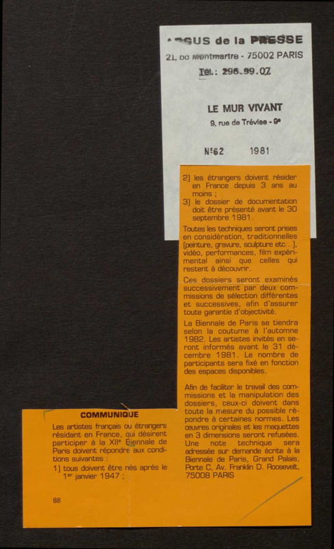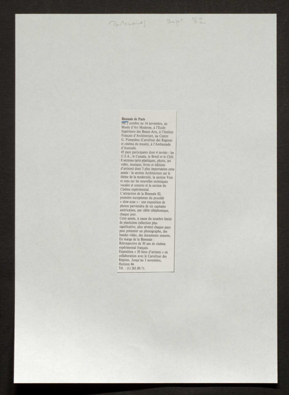 Revue de presse, Fonds Biennale de Paris 1959-1985, Archives de la critique d'art