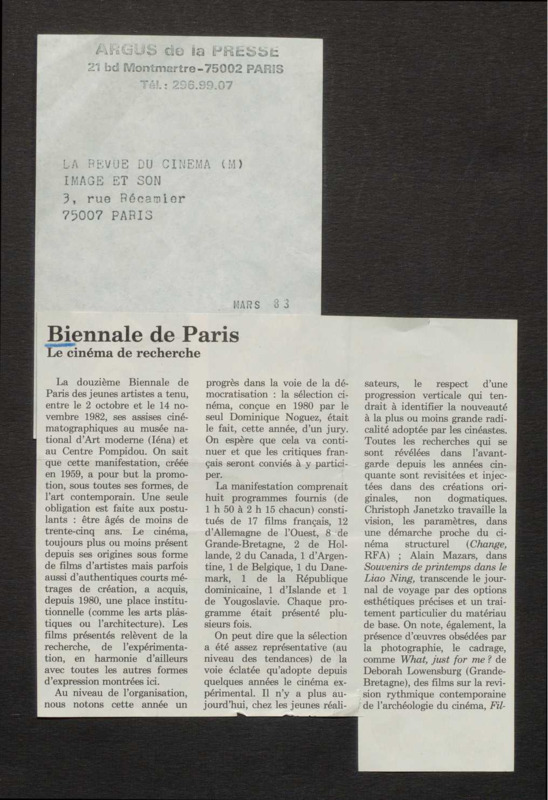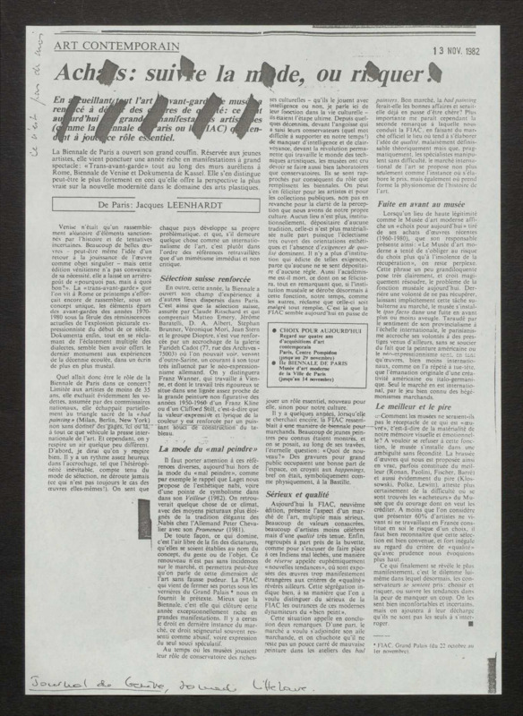 Revue de presse, Fonds Biennale de Paris 1959-1985, Archives de la critique d'art