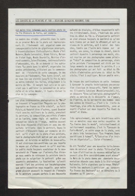 Articles mentionnant la 11ème Biennale de Paris, 1980