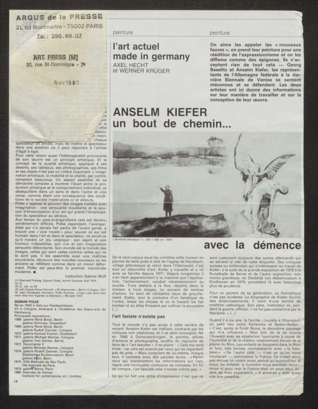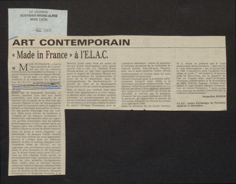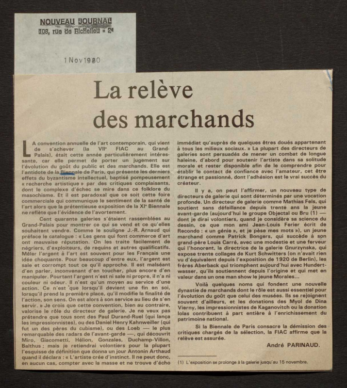 - Articles mentionnant la 11ème Biennale de Paris, 1980
