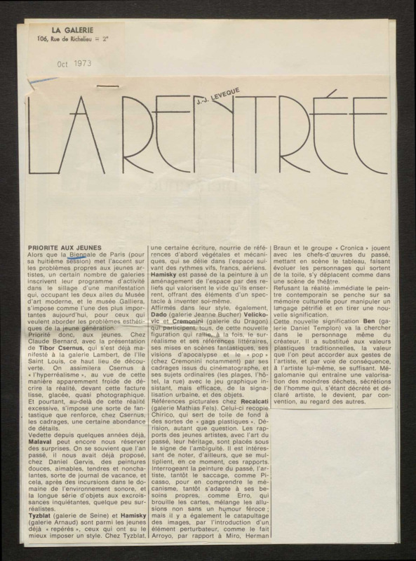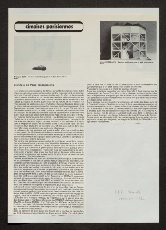 Articles mentionnant la 13ème Biennale de Paris, 1985FR ACA BIENN PRE85_03/070